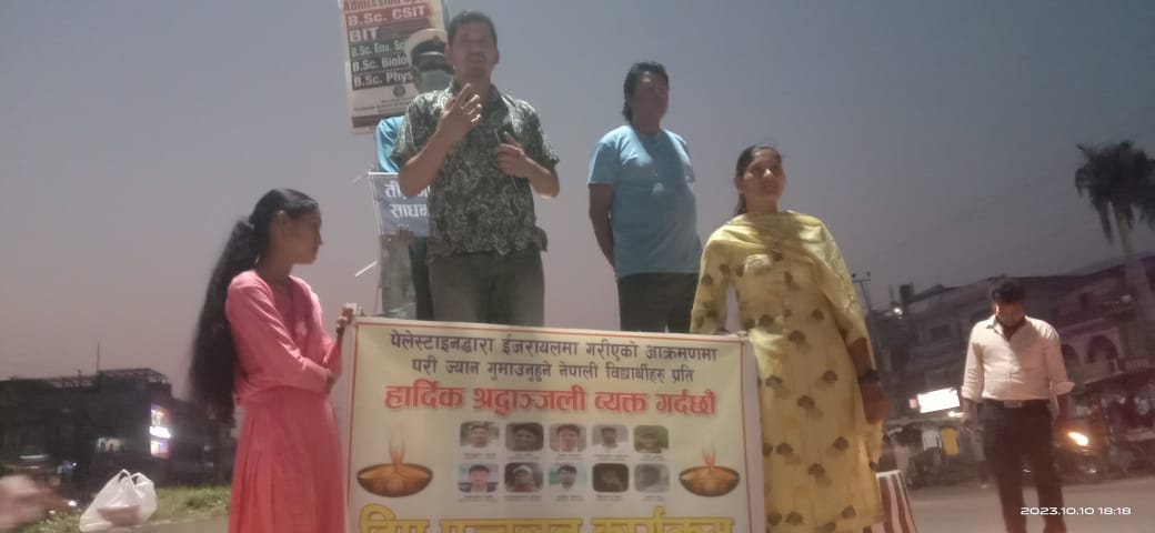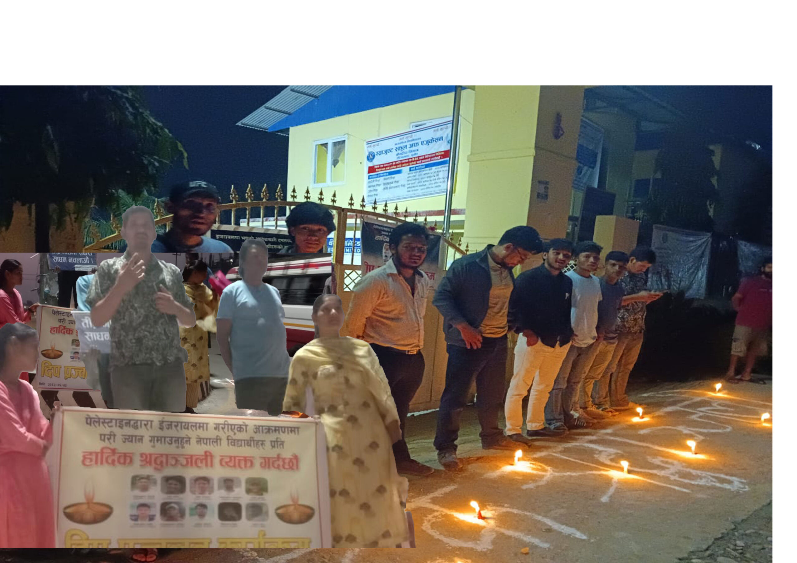 इजरायलमा भएको युद्धमा परी ज्यान गुमाएका नेपाली विद्यार्थीहरुको सम्झनामा आज साँझ युवा संठन नेपाल