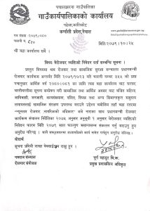 बेराेजगार ब्यक्तिकाे निबेदन दर्ता सम्बन्धि पचालझरना गाउपालिका र राेजगार केन्द्रकाे सुचना